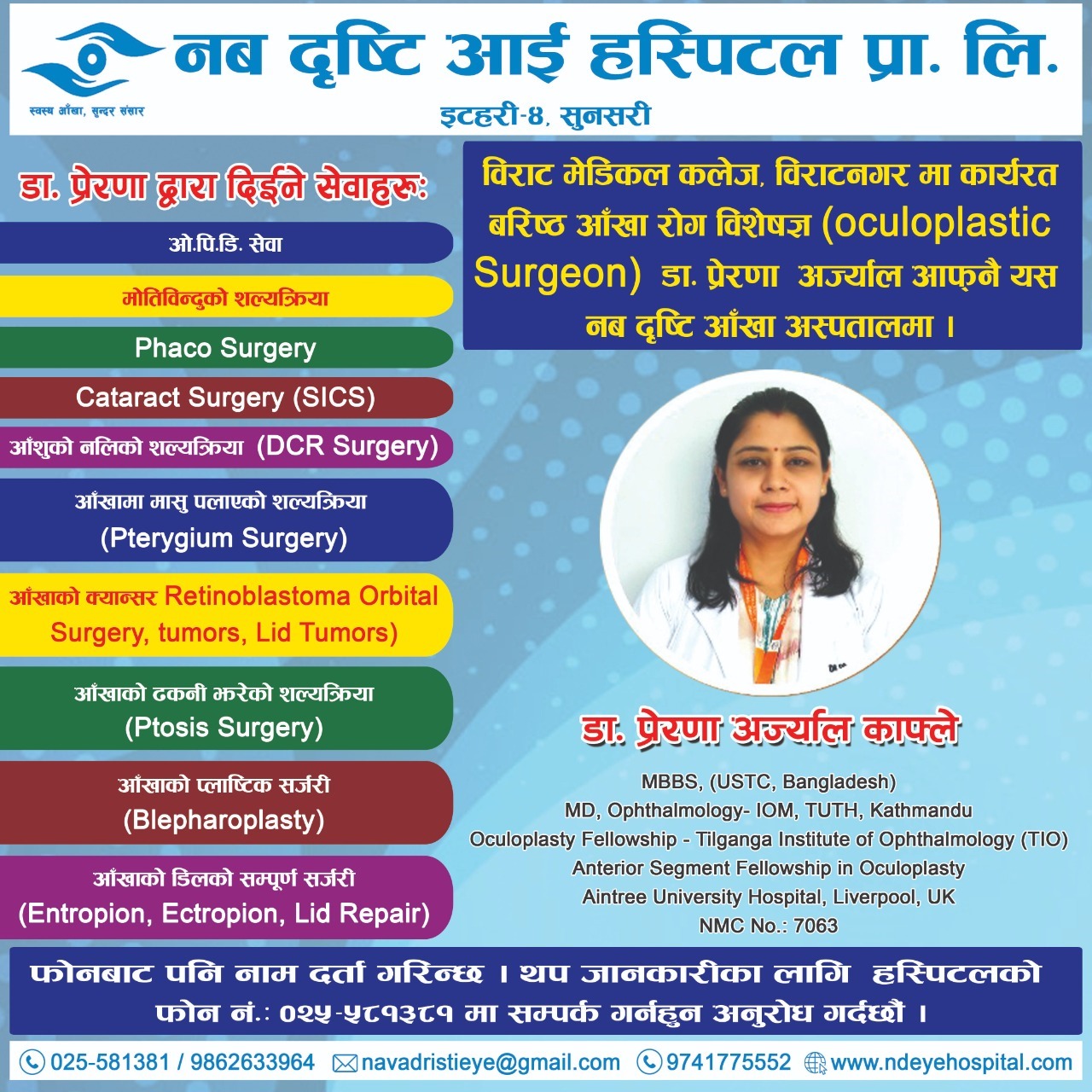 The Nava Dristi Eye Hospital was established on 2018 in Itahari district of Sunsari with the slogan ”Swastha Aakha Sundar Sansar”. Nava Dristi Eye Hospital has been able to win hearts of many patients not only of Nepal but also of neighboring countries such as India. Within just a period of 3 years from its establishment, we have been able to extend our services through two primary eye care centers and one sophisticated eye Hospital.